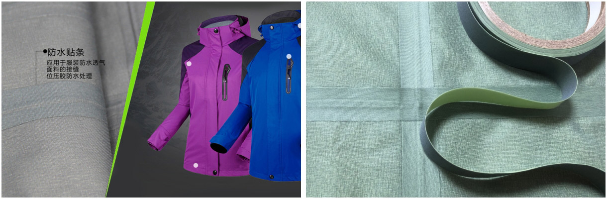 | 特征 | 柔軟的雪紡布 三層防水貼條 | 柔軟的雪紡布 三層防水貼條,粘合力強(qiáng) | 適合密封高要 求三層防水布 料 |